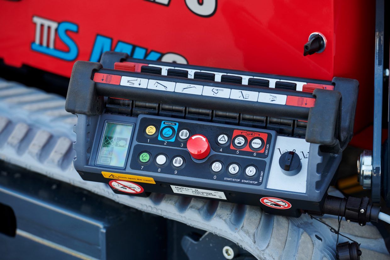 Auslegerbewegungen: Ruhig, keine ruckartigen Manöver. Nicht gegen Bauteile drücken (seitliche Handkraft begrenzt; typ. max. 400 N).